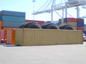 Oversized cargo like large loader tires or equipment can be easily be top loaded by crane and covered by a removable PVC tarpaulin. The tarpaulin is water, wind and mold resistant. The open top container comes standard with end doors for flexibility in loading and unloading.